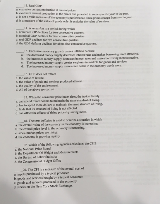 Solved 13 Real Gdp A Evaluates Current Production At Chegg Com