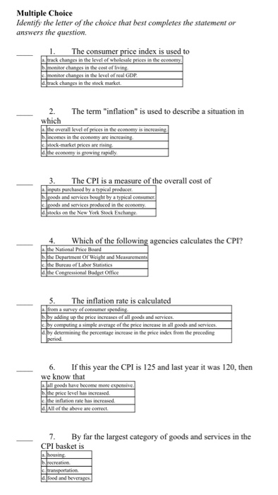 Solved Multiple Choice Identify The Letter Of The Choice Chegg Com